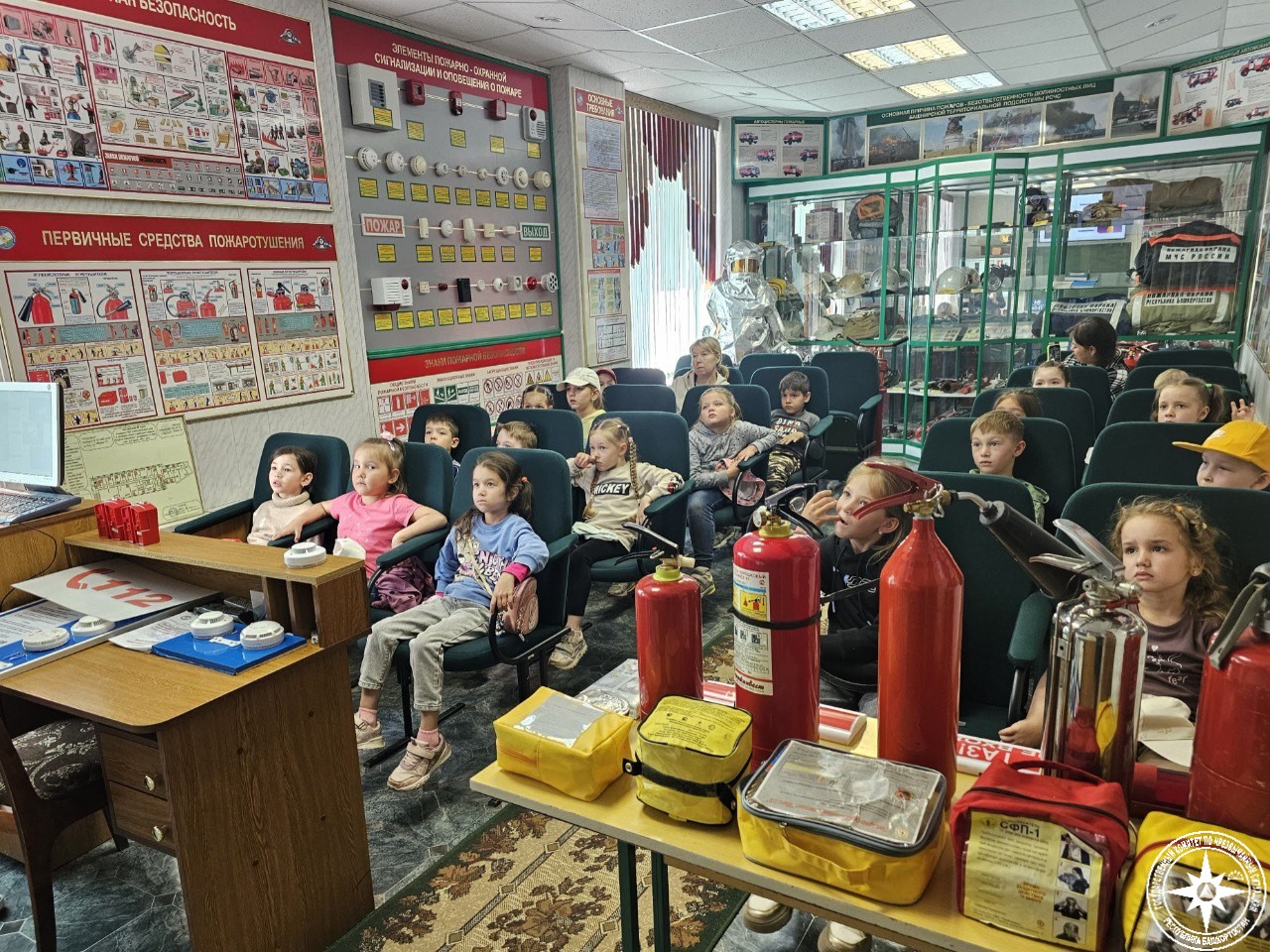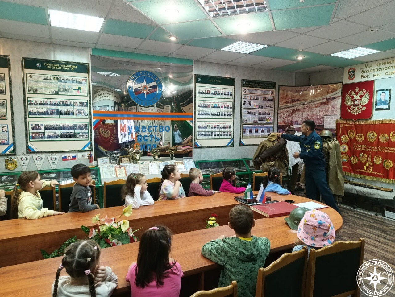Сегодня воспитанники детского сада №171 Уфы вместо обычной прогулки решили погулять с пользой и направились в Учебно-методический центр Госкомитета РБ по ЧС.