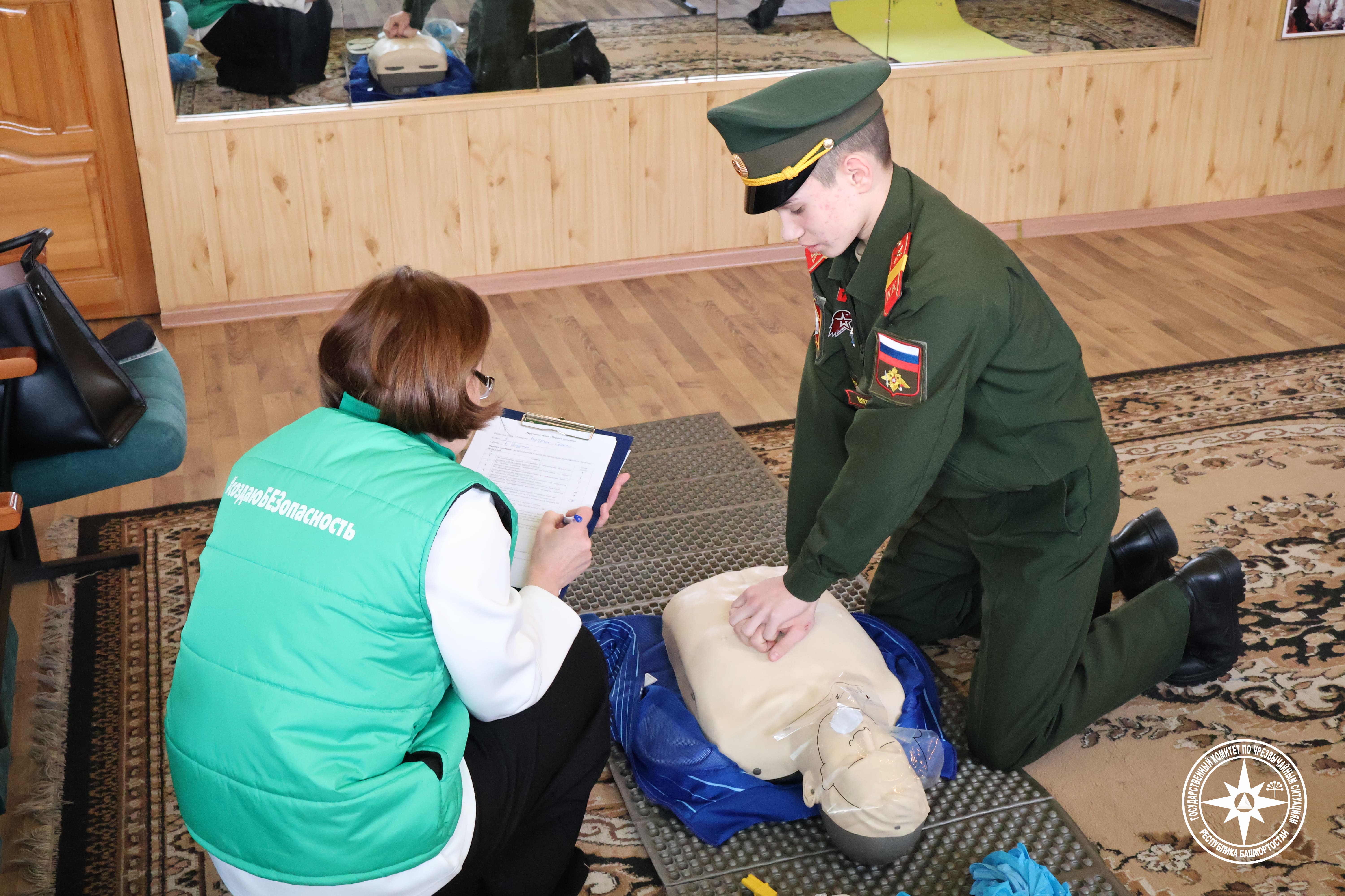 Особый акцент делался на практических испытаниях: оказание первой помощи, прохождение полосы препятствий, надевать защитный костюм и противогаз, разборка-сборка автомата Калашникова.