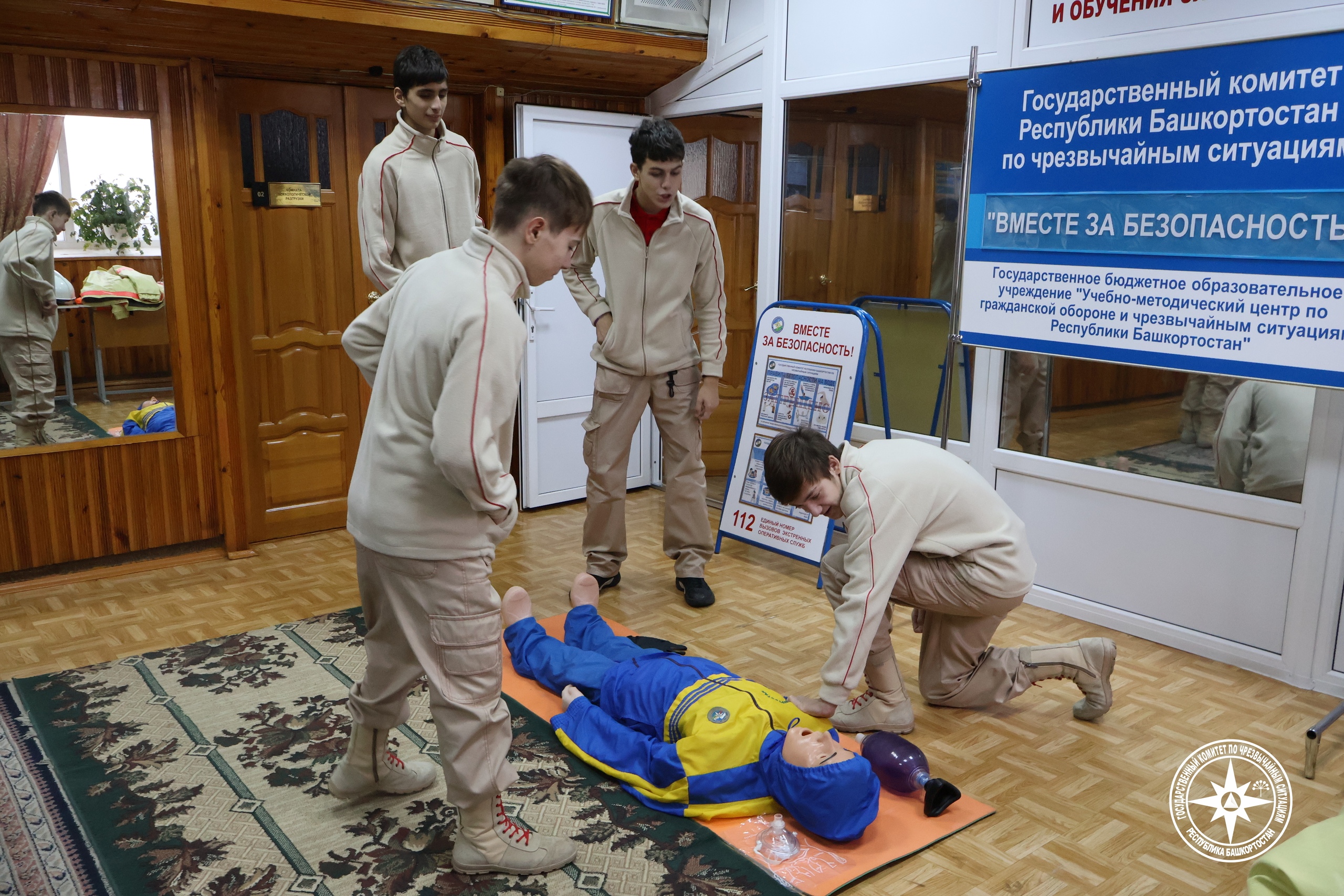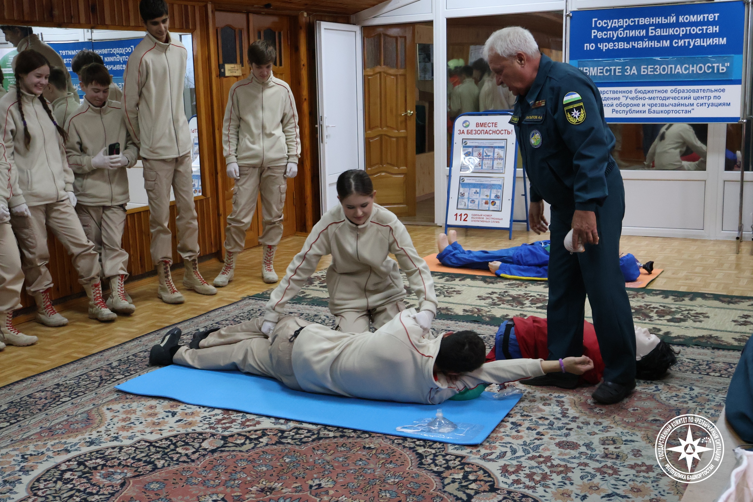 Специалисты Учебно-методического центра Госкомитета РБ по ЧС для участия в акции пригласили кадетов по профилю МЧС России из одной из школ г. Уфы. Детям показали обучающий видеоролик, разделили на три группы и на роботах-тренажёрах продемонстрировали весь комплекс оказания первой помощи условному пострадавшему. После был проведён разбор ошибок и показ правильного оказания первой помощи.